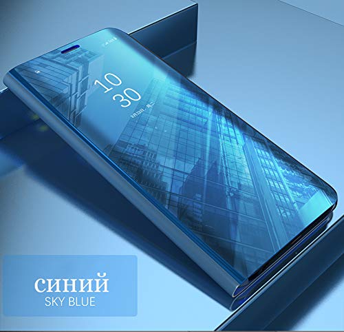 AE Mobile Accessories® Mirror Flip Cover Semi Clear View Smart Cover Phone S-View Clear, Kickstand FLIP Case for Samsung A71 (Sensor flip is not Working) (Blue)