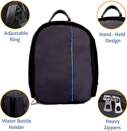 The lightweight DSLR camera backpack case lets you conveniently pack your camera and its gear, and comfortably carry them around with you. Allow you to quickly access your camera through the zippered lid to capture everyday photo ops. Bag comes base zipper, reinforced handle grip, extra shoulder padded, high quality zippers and many more differentiators. The bag features multiple mesh pockets for cables and chargers, adjustable padding which you can use to arrange your camera and its accessories as you please, and a waterproof cover to protect your equipment from the rain. No matter what equipment you use, the removable interior of the AMPLE ITALIA DSLR backpack can be adjusted to fit multiple DSLR bodies, lenses, and accessories. The DSLR Bag comes with 2 Rubber Grip Bases for added protection & has base zipper enclosure for rain cover. You can quickly remove the cover during the event of a rain and protect your heavy equipment