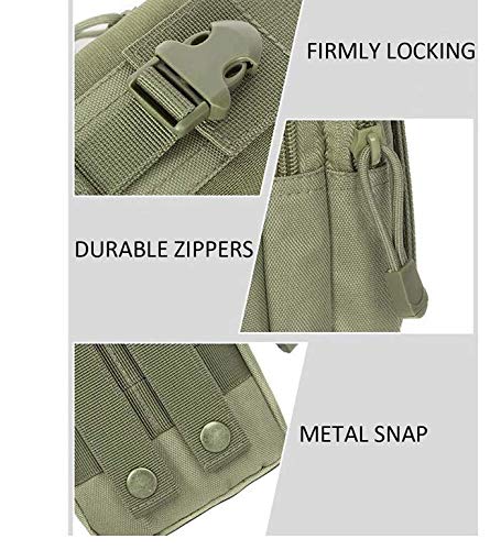 This molle waist pouch is very safe and flexible,Buckle on the front side for protecting mobiles from dropping; Two firm zippers for preventing stuffs inside sliding out. Rear molle system with two button straps, molle width can be adjustable for different width belt, can be hooked onto a belt or clipped into place with MOLLE straps.It’s aslo suitable for tactical belt, tactical molle vest or molle tactical backpack