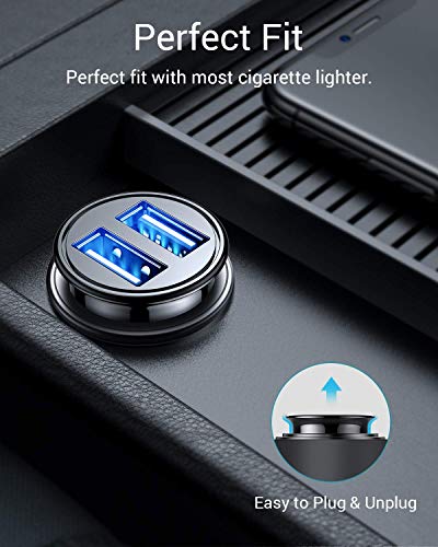 COMPACT SIZE: with tiny thumb-sized(Size: 1.7inchx0.9inch) body, it perfectly blends with most car cigarette lighter and sits comfortably with the edge of the outlet. Our smallest car charger yet; it´s portable and you can take everywhere